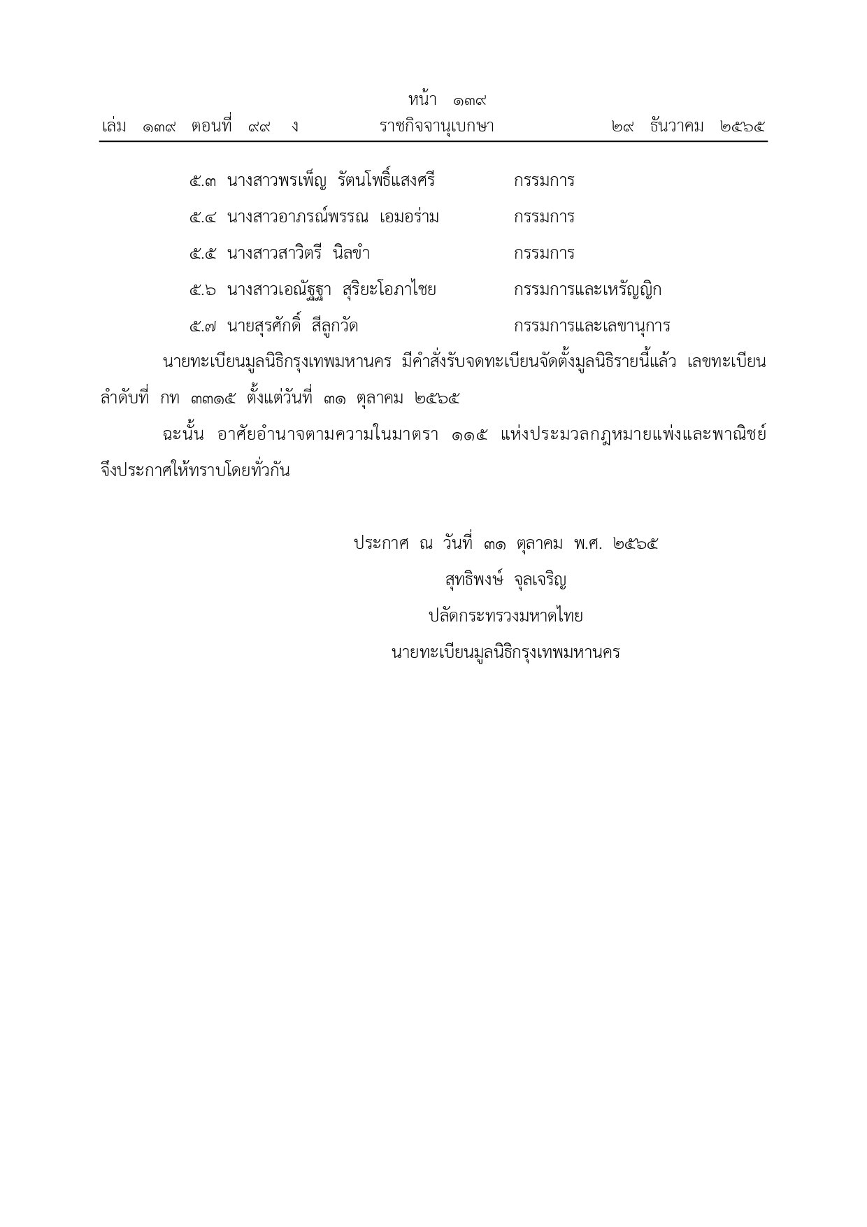 เล่มที่ 139 ตอนที่ 99 ง ลงวันที่ 29 ธันวาคม 2565 ดังนี้