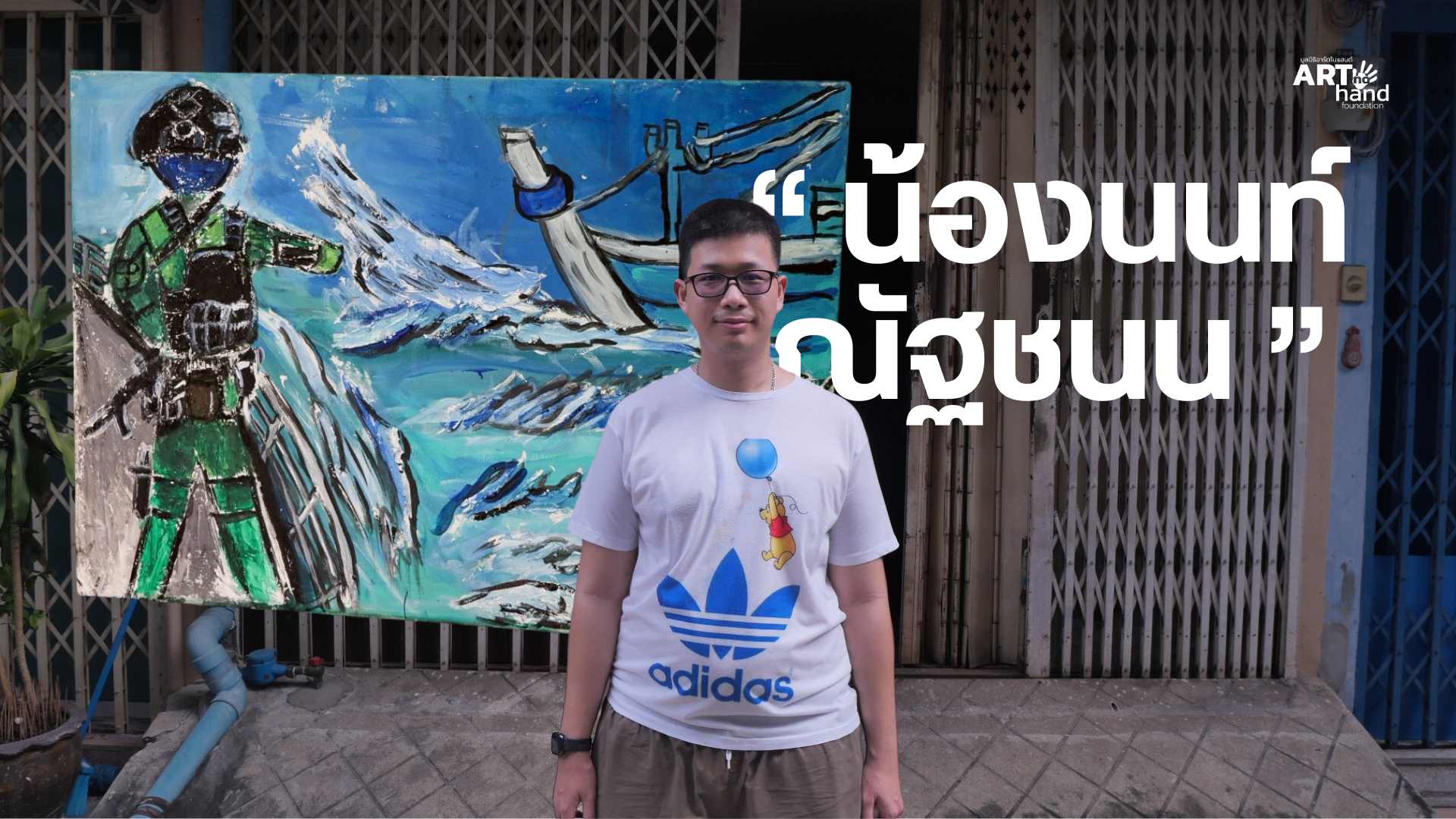 ทว่า...เมื่อประตูบานหนึ่งปิดลง ประตูอีกบานก็เปิดขึ้นเสมอ น้องนนท์ไม่ได้ละทิ้งความฝัน แต่เขาเปลี่ยนสนามรบจากชีวิตจริงมาสู่ผืนผ้าใบ ดินสอและพู่กันได้กลายเป็นอาวุธคู่กายให้เขาสร้างสรรค์เรื่องราวการทำงานของเหล่าทหารผู้กล้าหาญ