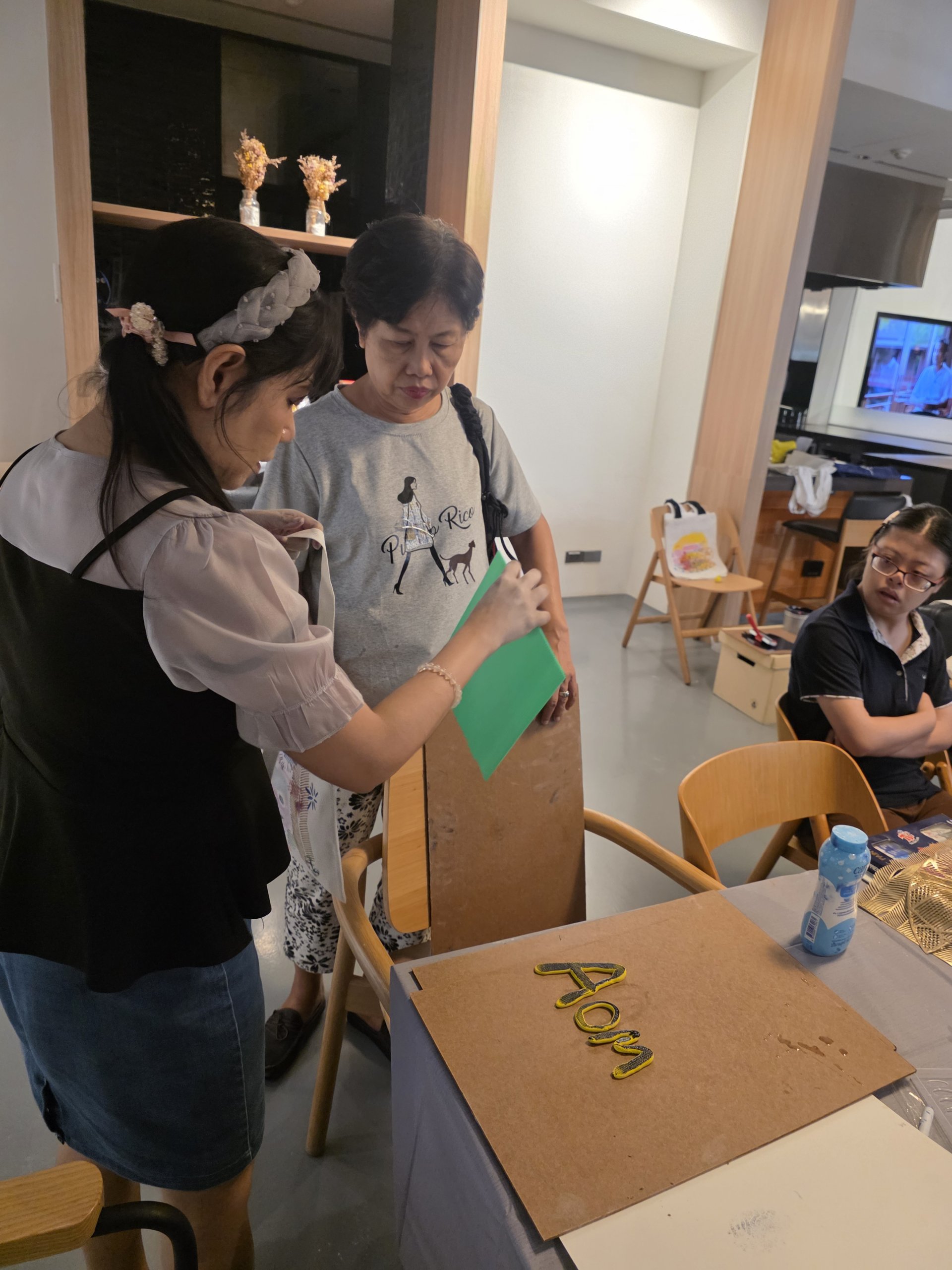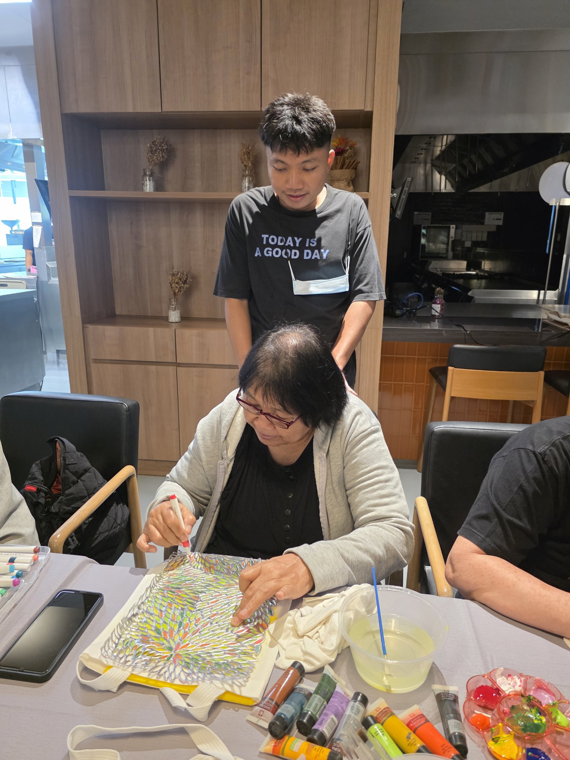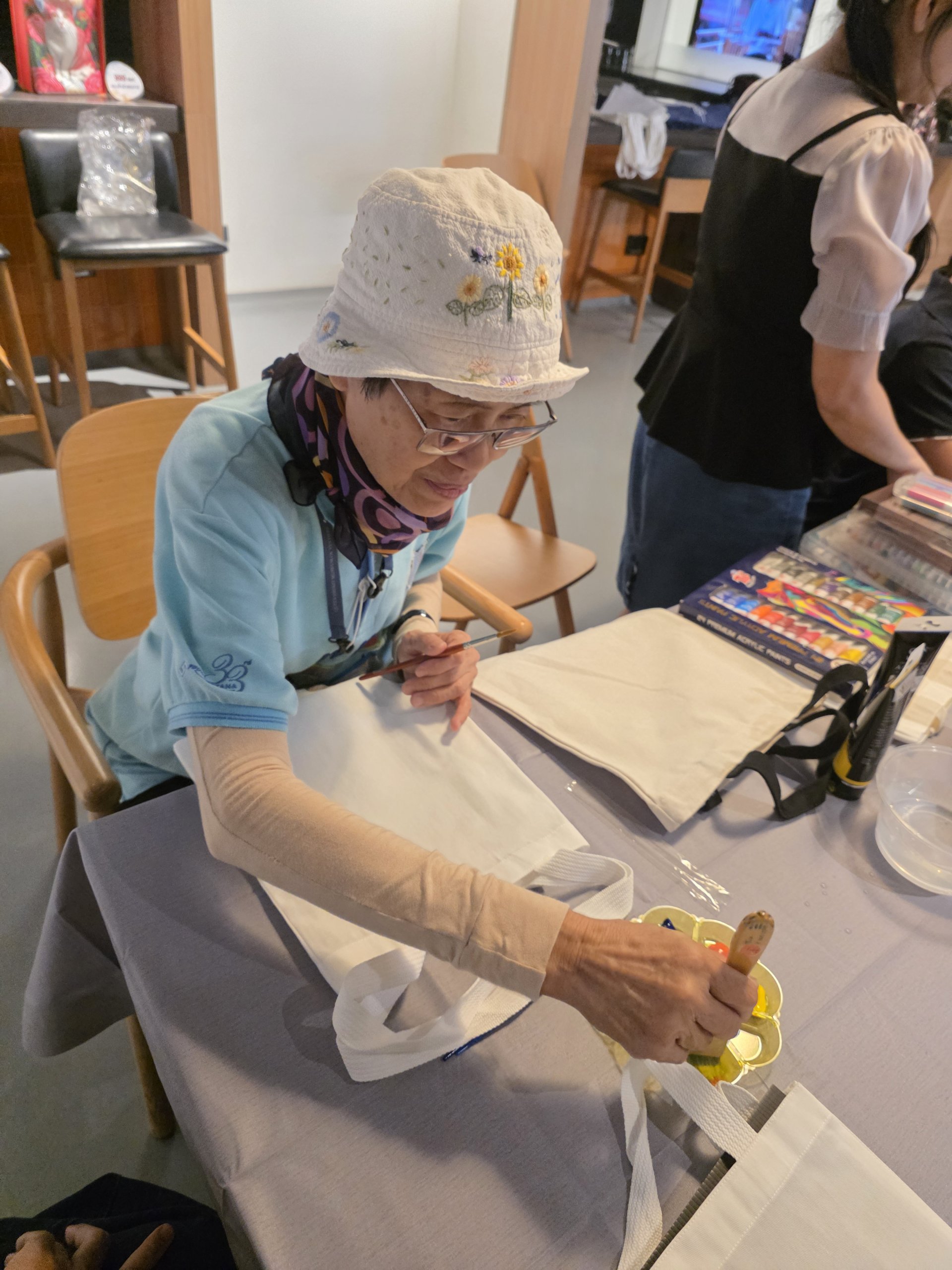 โดย ผศ.สุทธาสินีย์ สุวุฒิโฑ และน้องเพิร์ธ ศุภกร อัปมาโน ที่มาสอนการวาดภาพ การใช้สีอย่างสร้างสรรค์และการพิมพ์ภาพ ลงบนกระเป๋าผ้า ซึ่งเป็นผลงานของตนเองเพียงหนึ่งเดียวในโลก