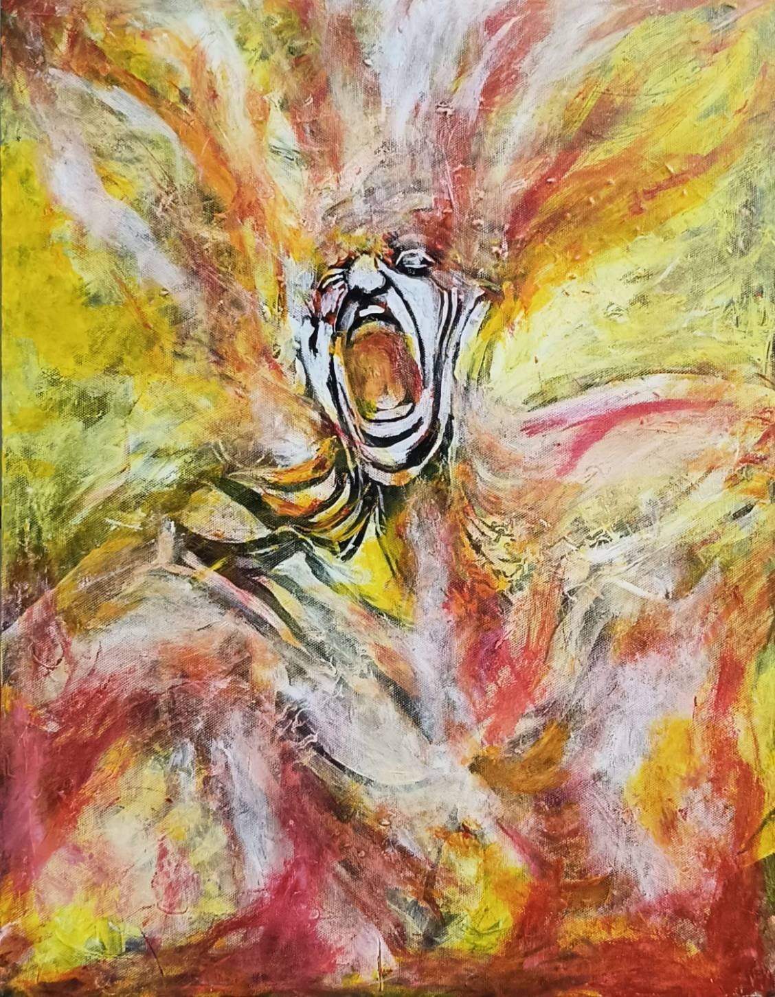 ภาพนี้เกิดจากความรู้สึกที่ผมเก็บมันไว้ข้างในเลยอยากจะตะโกนมันออกมาเพื่อที่จะปลดปล่อยความรู้สึกที่อึดอัดของตัวเองออกมาครับ