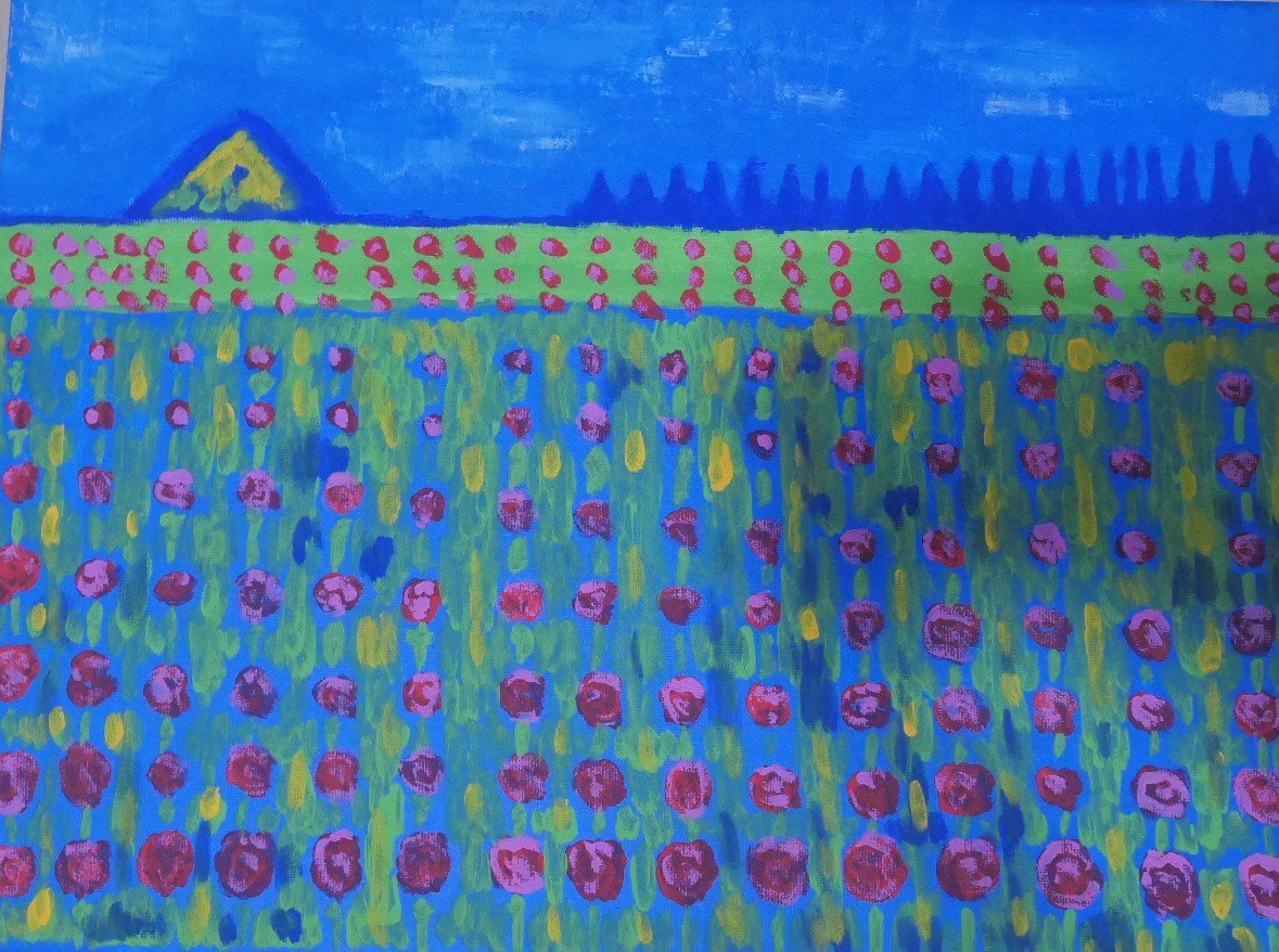 แรงบันดาลใจ :    สถานที่แห่งความปลอดภัยในโลกที่เต็มไปด้วยดอกกุหลาบ มีความสุขที่ได้วาดภาพ อยากให้คนมองภาพนี้ยิ้มได้