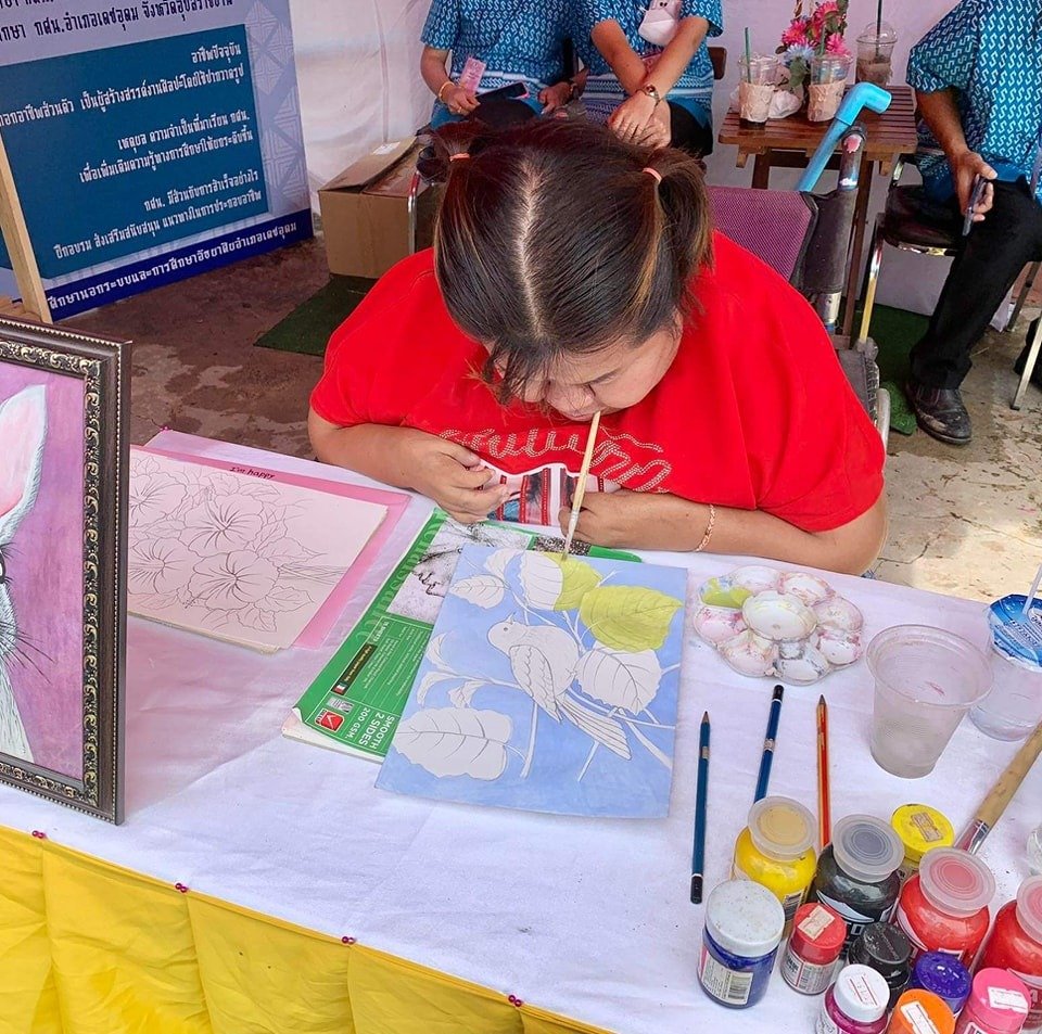 จันทร์ที ฝึกฝนการวาดภาพด้วยปาก และเรียนรู้เทคนิคการวาดภาพ อย่างสม่ำเสมอจนสามารถสร้างสรรค์ผลงานศิลปะได้งดงามจนเป็นประจักษ์ ได้รับการยอมรับจากคนในครอบครัว และสังคมรอบข้าง